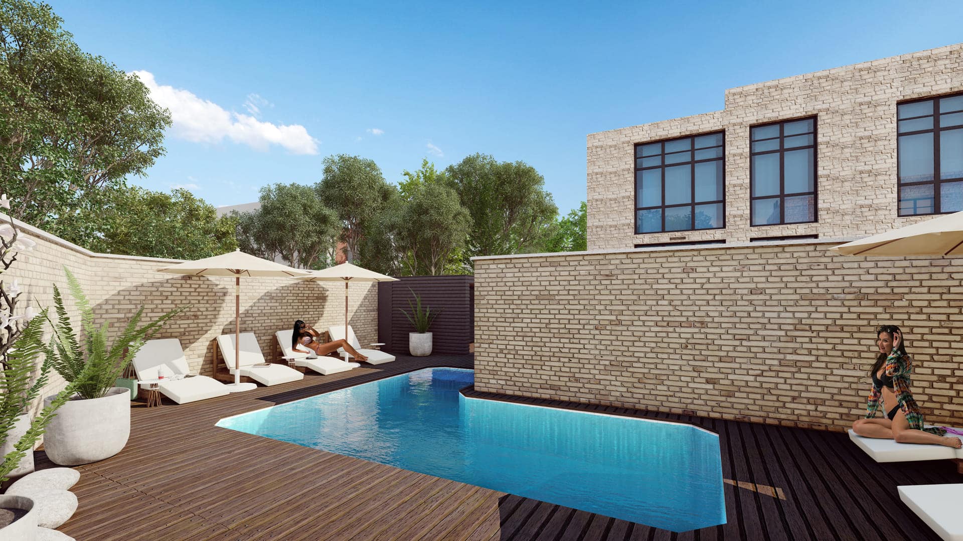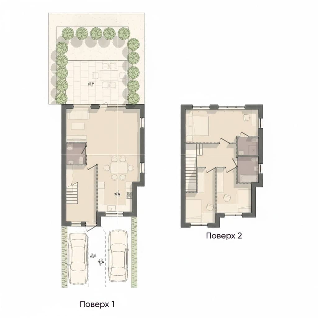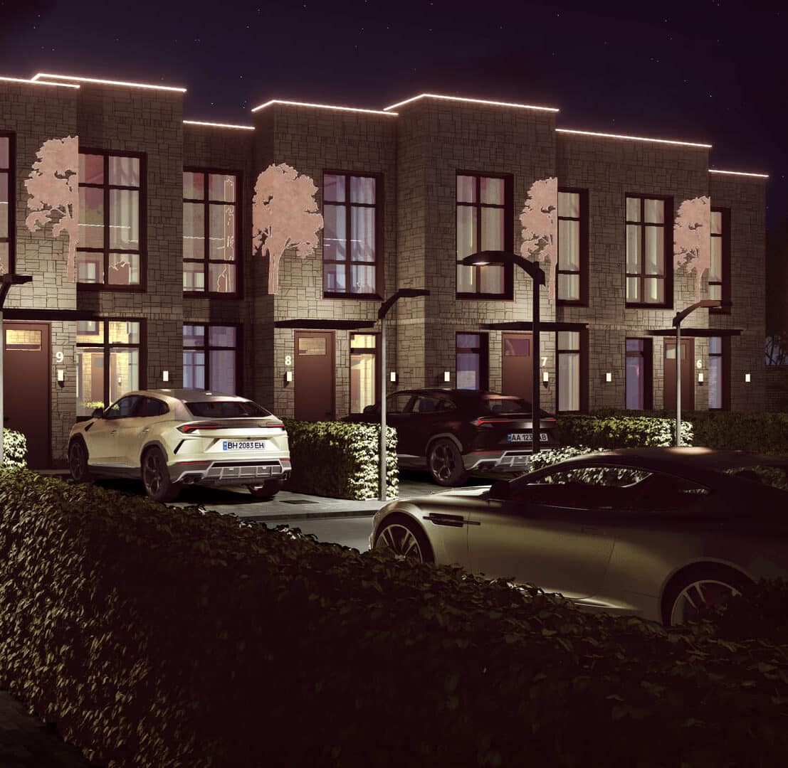 With a wider façade, you get more space for comfortable parking of two cars, a convenient passage, and an area for leisure or children’s games. The extra space allows you to create a cozy yard for family evenings, barbecues, or even a garden. Built from eco-friendly ceramic blocks, these townhouses provide strength, quietness, and protection against moisture and fire.